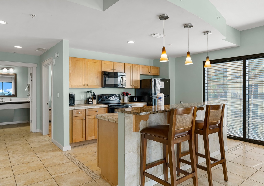 Our one-bedroom condos give families a living space to relax while little ones nap behind a closed door. Each unit will sleep up to 4-guests with a king bed, sofa sleeper, 2-TV’s, and are fully equipped with household essentials like basic cookware, and linens.