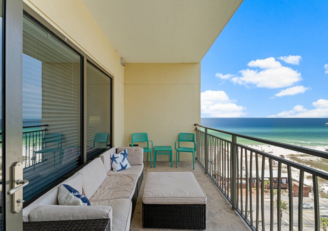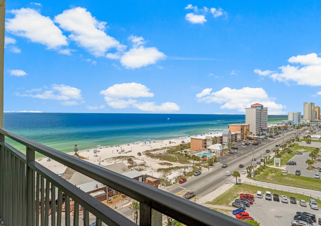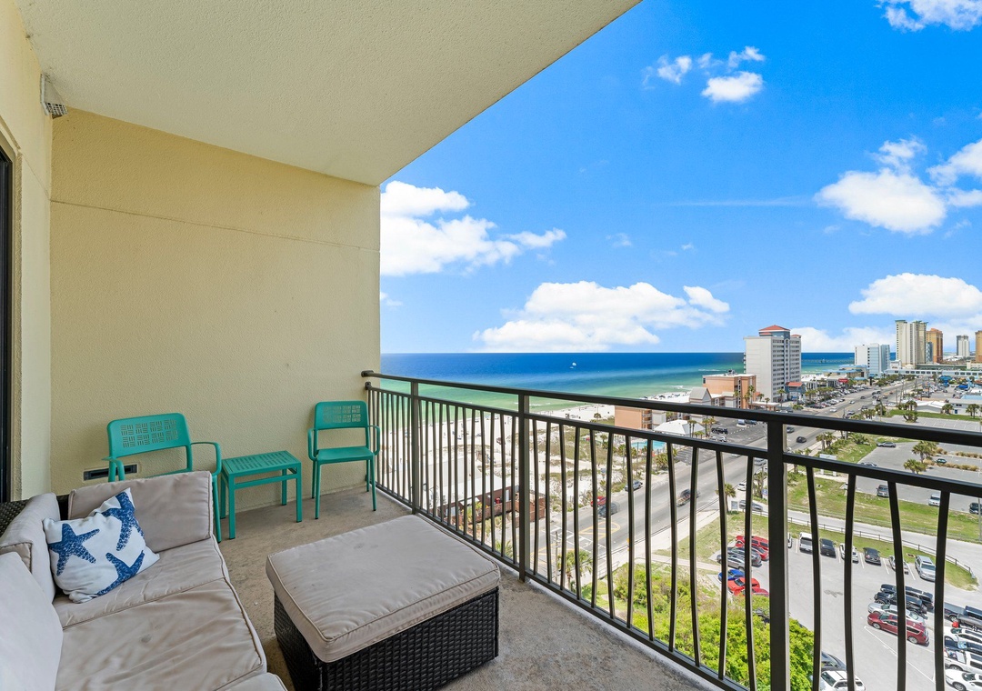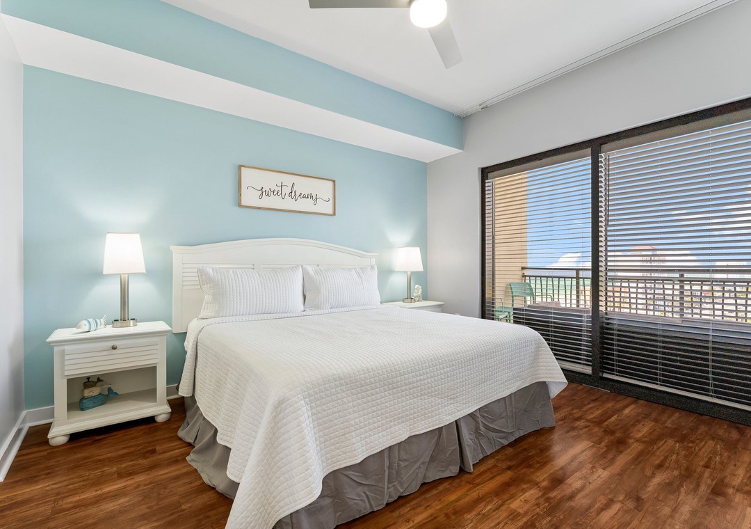 Enjoy the beautiful Panama City Beach sunset and the Gulf from the private balcony or from our unique sunset decks! This one bedroom one bathroom condo offers a full kitchen with full size refrigerator, stove/oven, dishwasher and microwave. Additionally, this unit sleeps 5 guests, with the king bed in the master bedroom, full size, and twin-size pullout sleeper sofas.