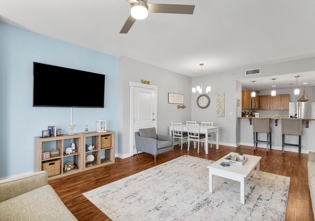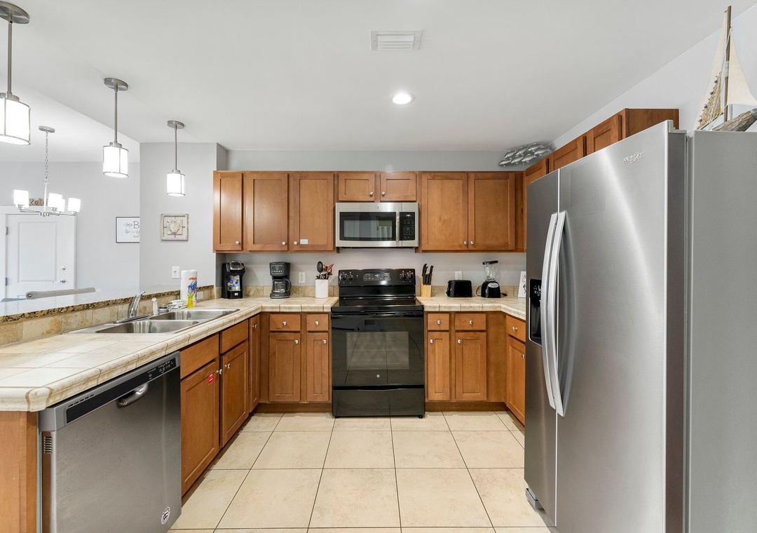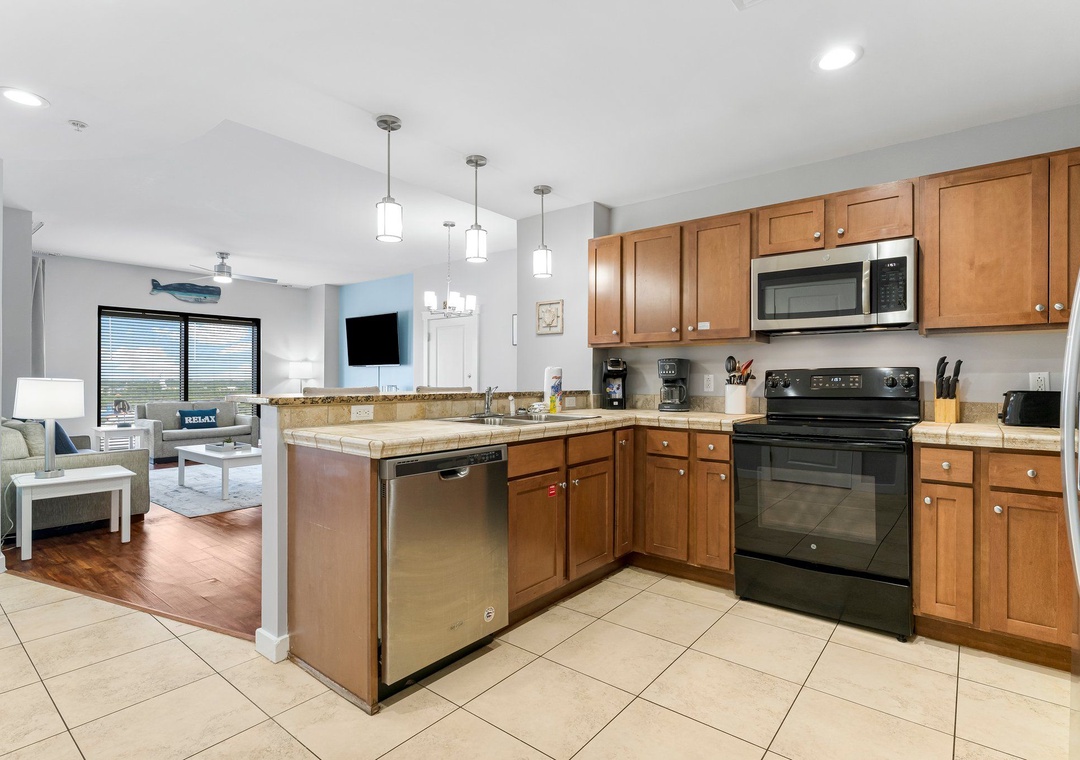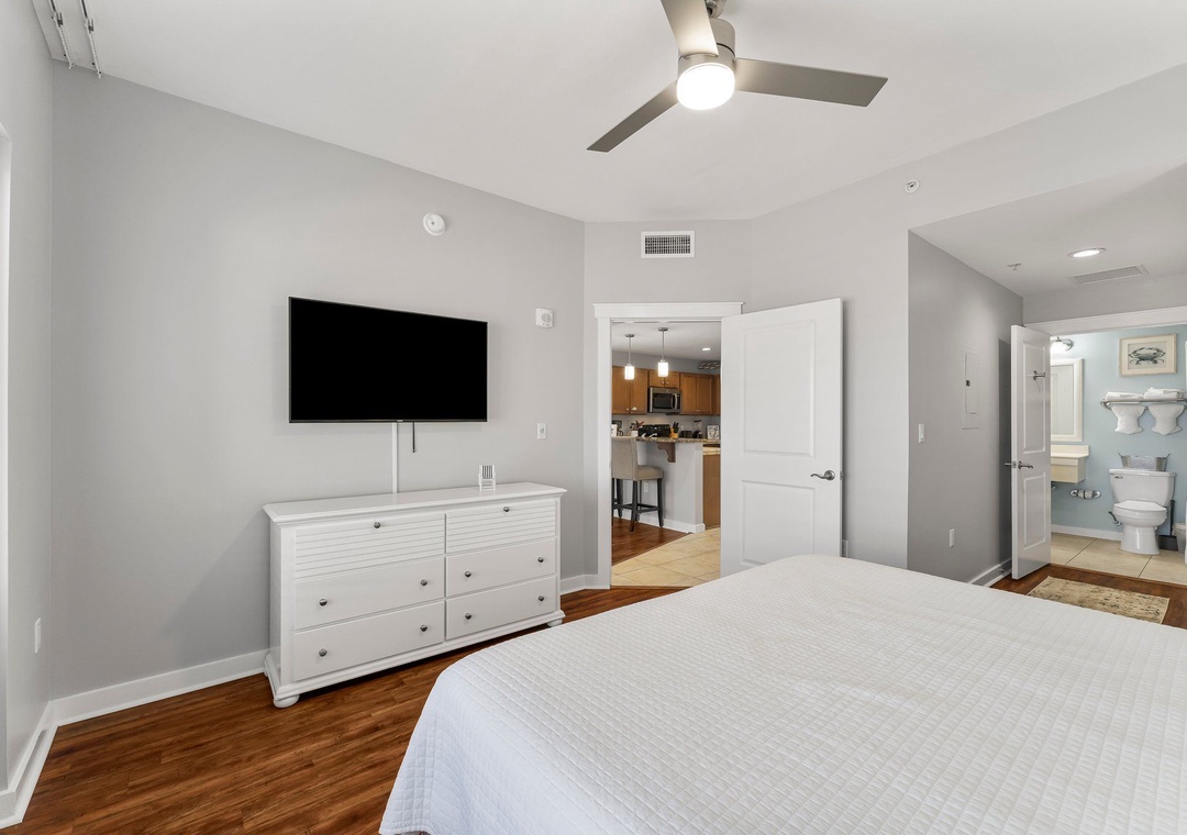 Enjoy the beautiful Panama City Beach sunset and the Gulf from the private balcony or from our unique sunset decks! This one bedroom one bathroom condo offers a full kitchen with full size refrigerator, stove/oven, dishwasher and microwave. Additionally, this unit sleeps 5 guests, with the king bed in the master bedroom, full size, and twin-size pullout sleeper sofas.