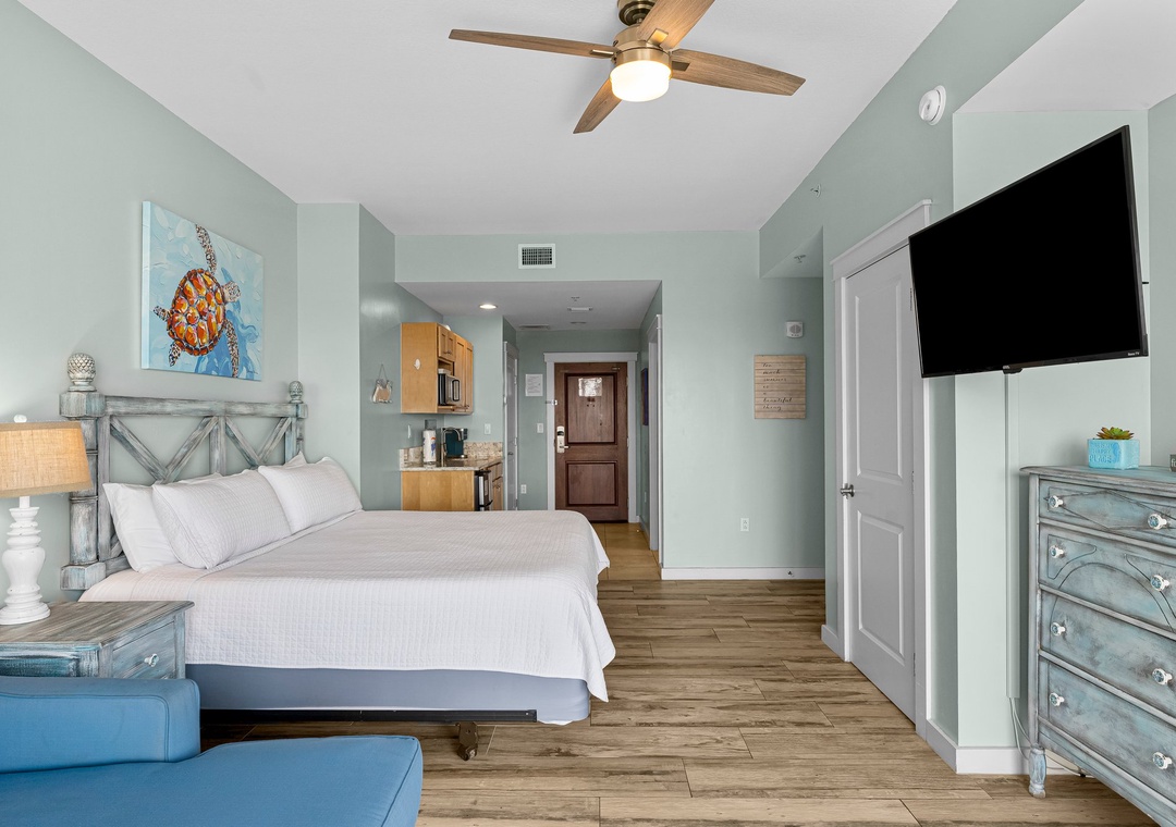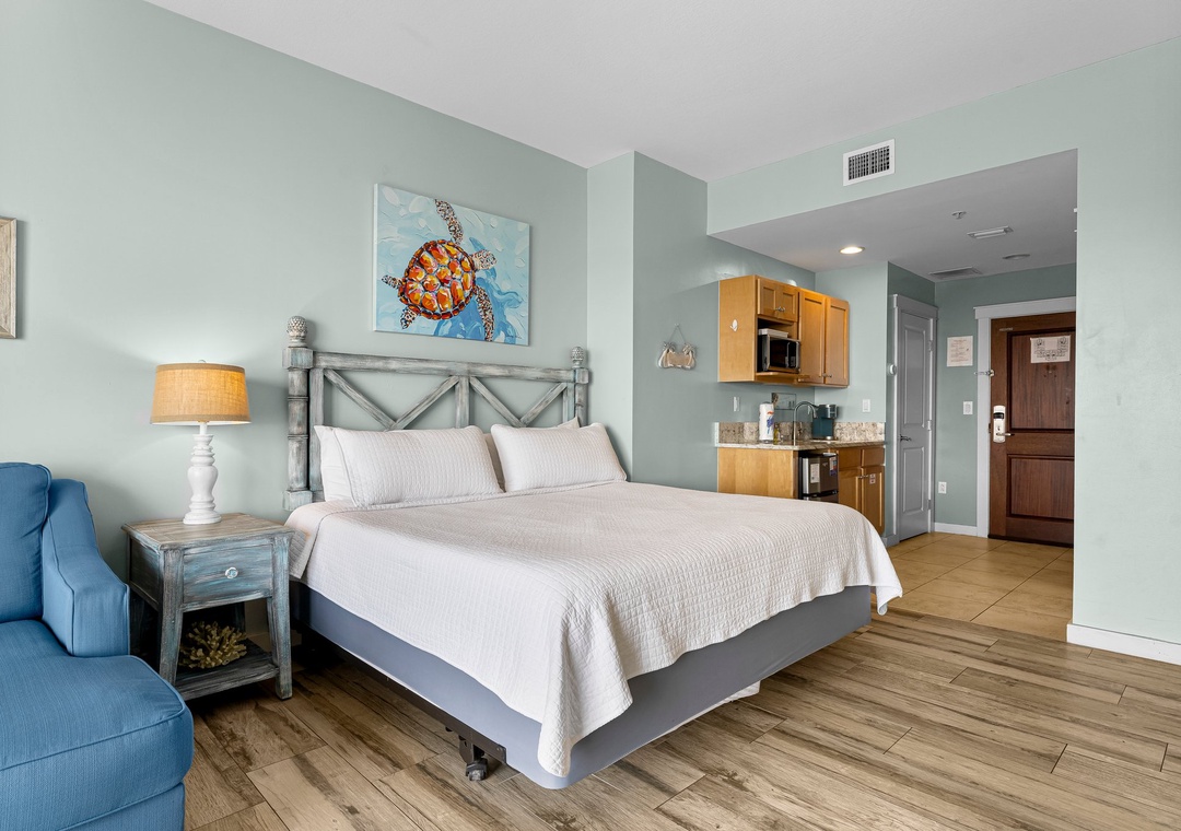 Our three-bedroom condo give families and guests more than enough room to spread out and relax! This unit comes with two king bedrooms, one queen bedroom, and a Murphy Bed, 4-TV’s, 3-full baths, and are fully equipped with household essentials like basic cookware, linens, and a washer and dryer.