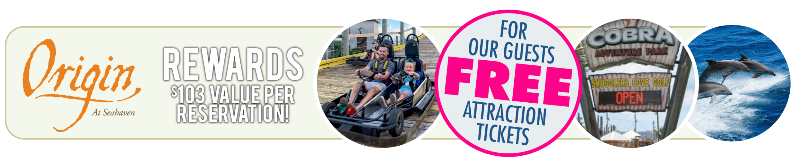 In addition to having all the conveniences of home, amenities galore, and gorgeous Gulf views, Origin at Seahaven has added a few more ways to spoil you during your stay. As an Origin guest, you’ll get to take advantage of FREE extras – like complimentary admission to several of Panama City Beach’s favorite attractions! There are no gimmicks. No points to count, no tiers to reach, or tricky registration process. Just straightforward immediate benefits and perks to make your Origin stay more memorable and rewarding.