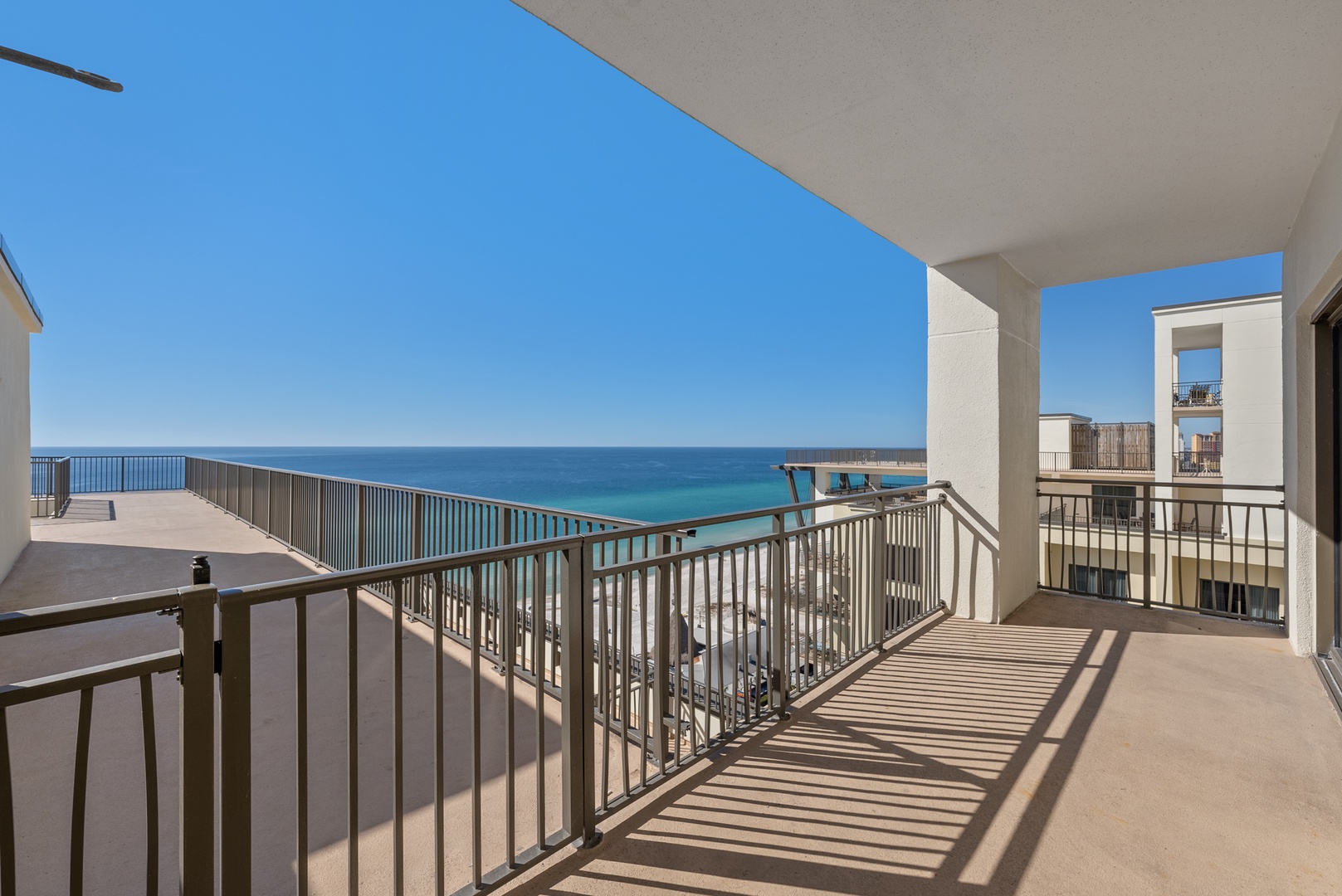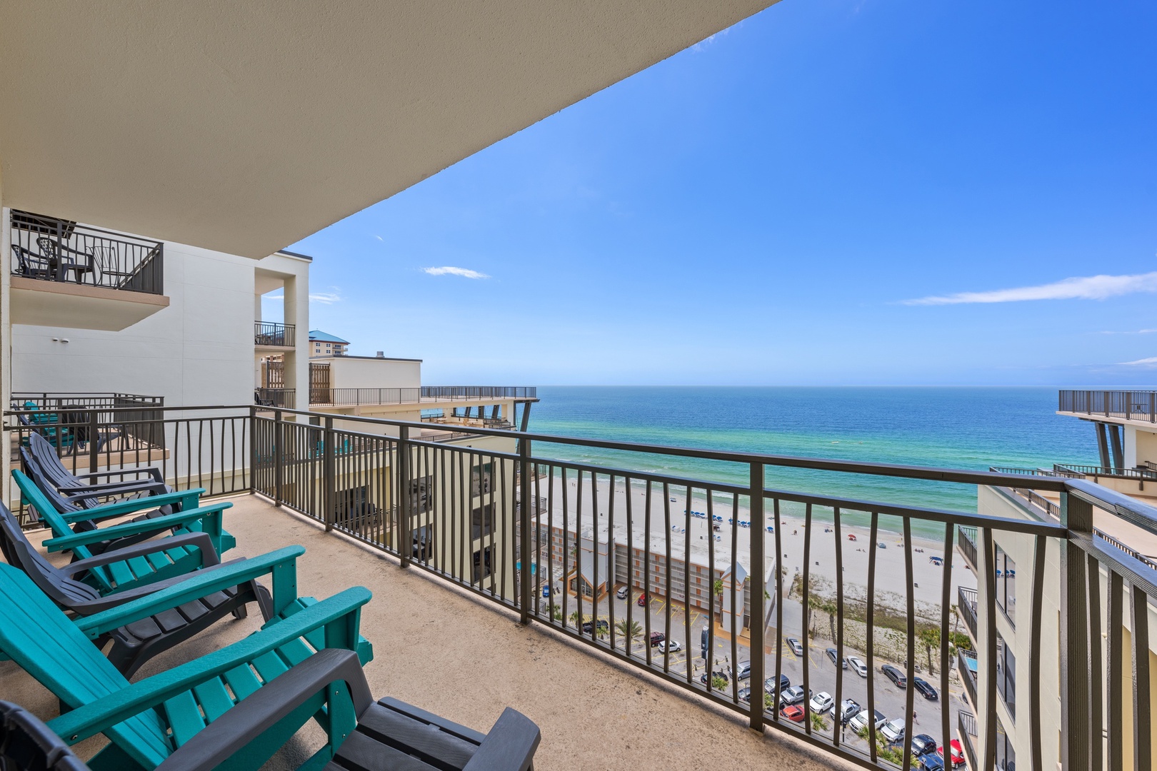 These one-of-a-kind adjoining condos with endless Gulf views can now be yours making one HUGE 6 bedroom condo! The identical 3 bedroom / 3 full bathroom floorplans facing the Gulf can be used or rented as separate units individually secured by custom bolt-lock adjoining doors, or combined for a spacious 6 bedroom, 6 full bathroom, two kitchen, almost 4,000 square foot suite which comfortably sleeps 16 and decorated in a tasteful space-saving style allowing for extra sleepers and abundant ‘playing room.’ In addition to the spectacular Gulf and beach views from the private balconies off the living areas and bedrooms, the extended balconies stretching from the sides of both condos provide breathtaking panoramic views of the Gulf shoreline and amazing sunsets!