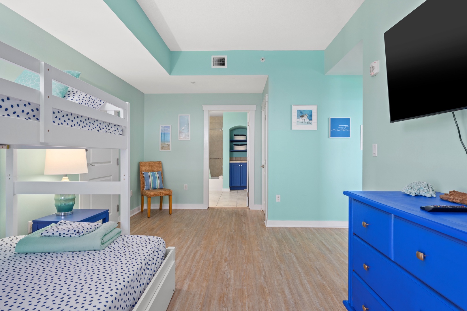 Our three-bedroom condos give families and guests more than enough room to spread out and relax! This unit will sleep up to 9 guests with two king bedrooms, a twin-over-queen bunk room and queen sleeper sofa in the living room.