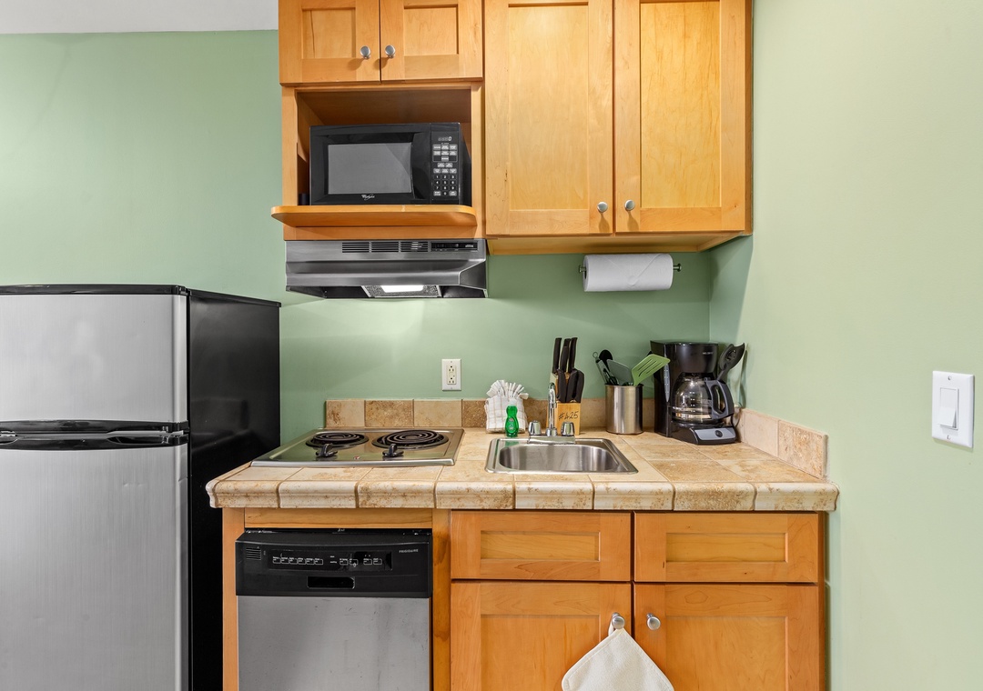 - Kitchenette with two top stove