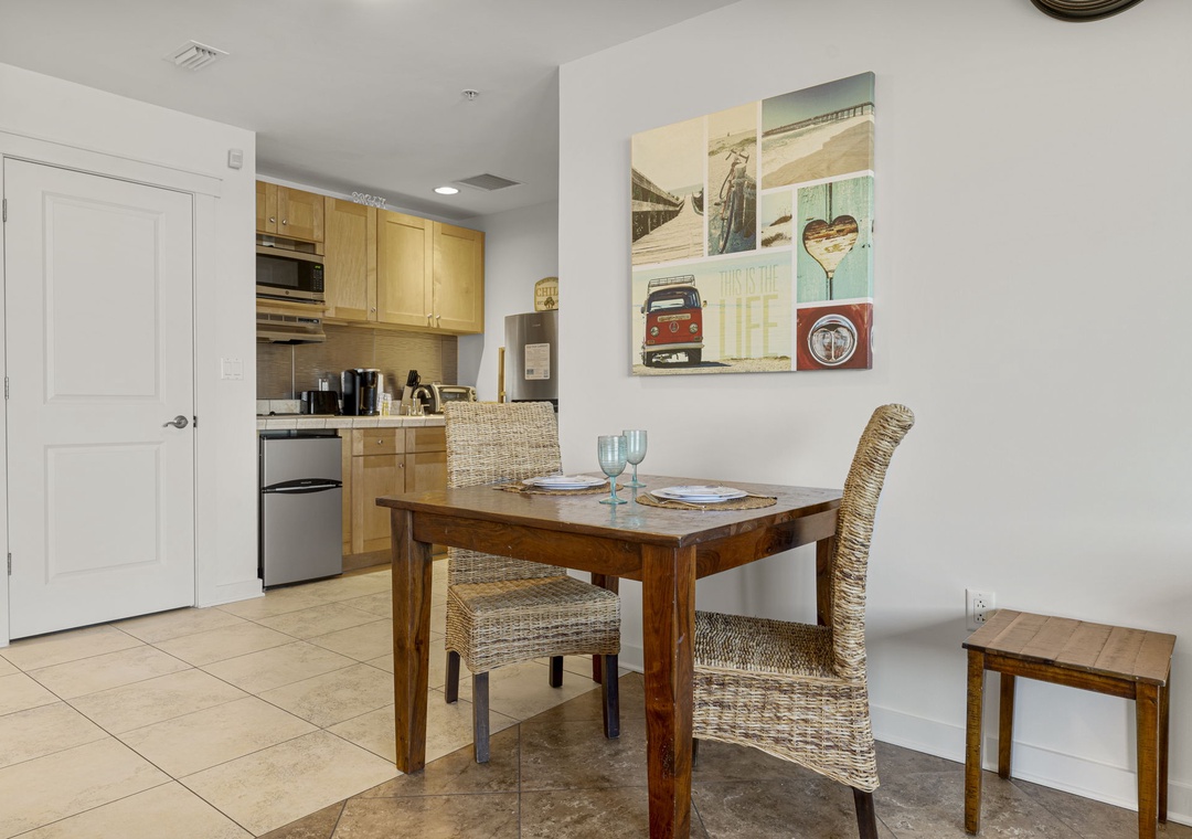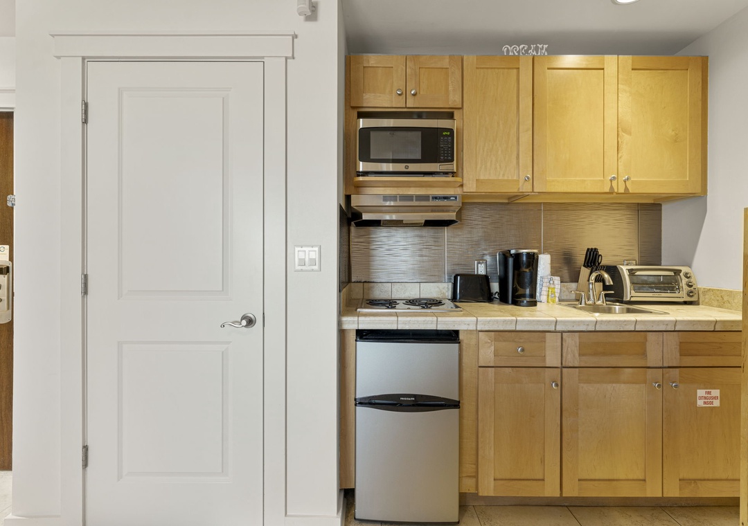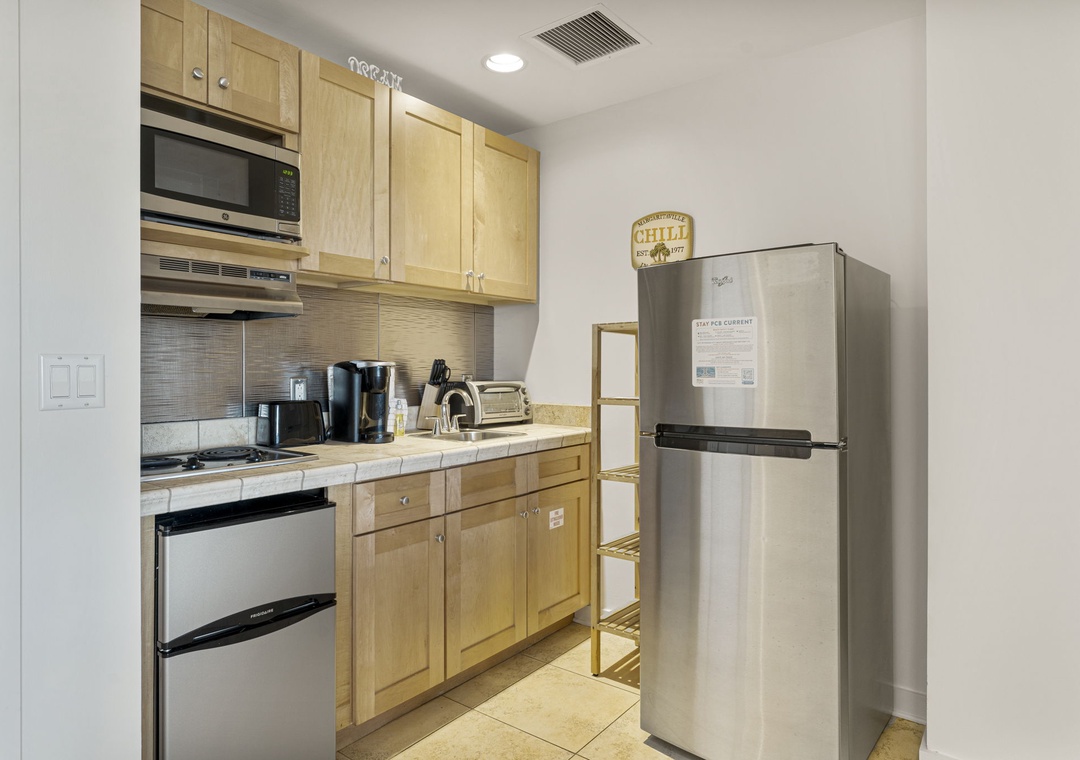 - Kitchenette with two top stove