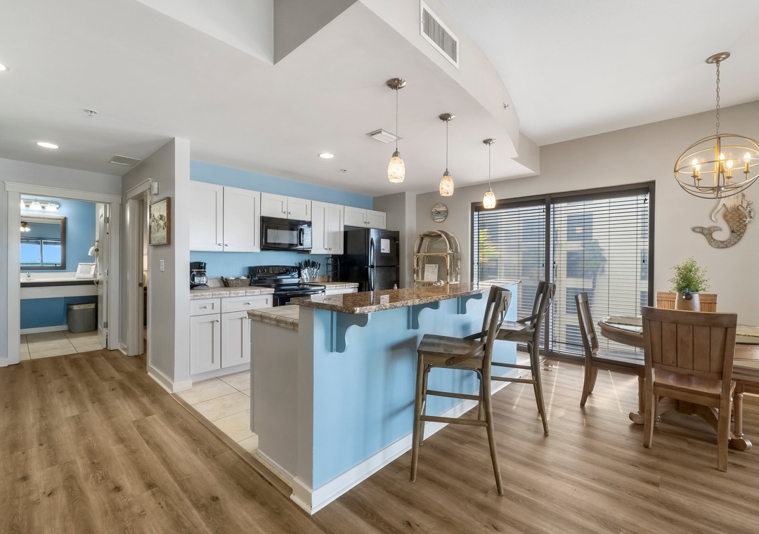 Our one-bedroom condos give families a living space to relax while little ones nap behind a closed door. Each unit will sleep up to 4-guests with a king bed, sofa sleeper, 2-TV’s, and are fully equipped with household essentials like basic cookware, and linens.