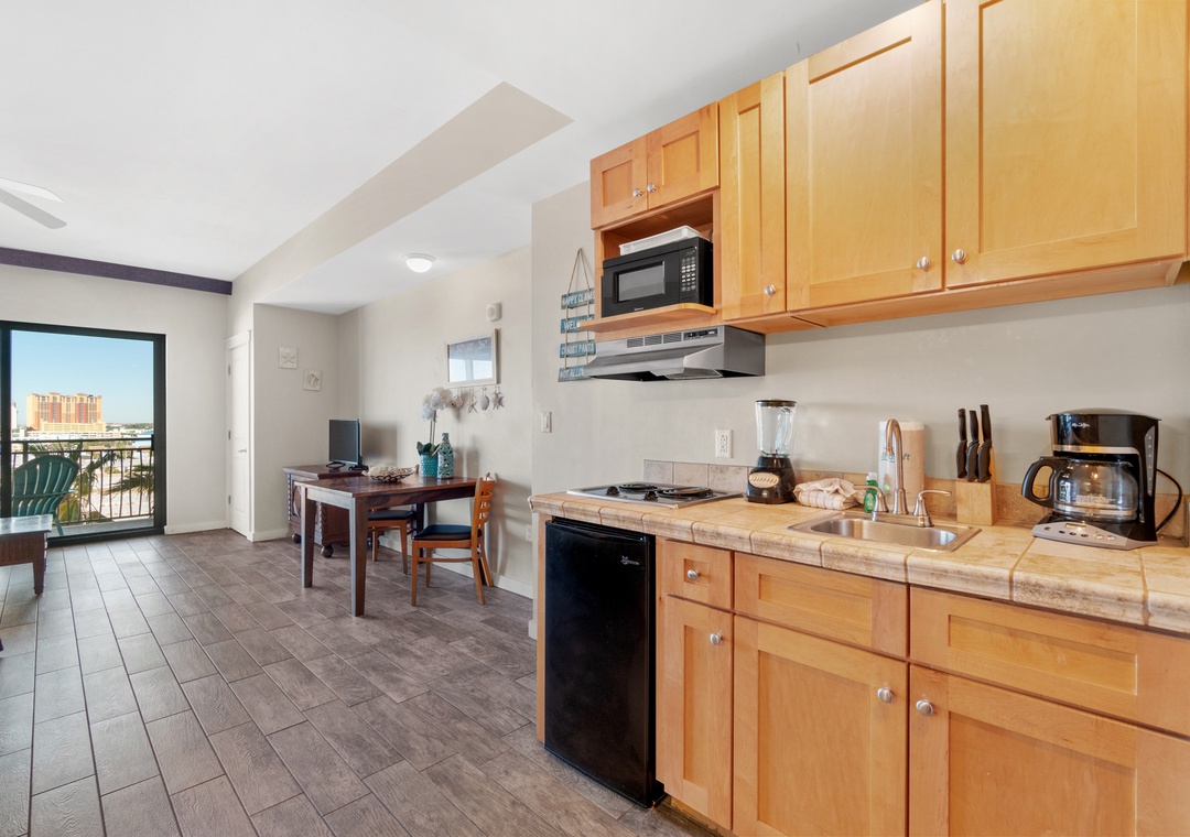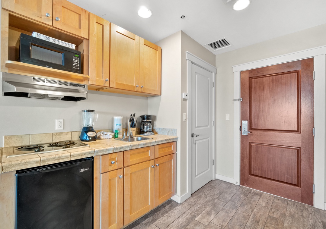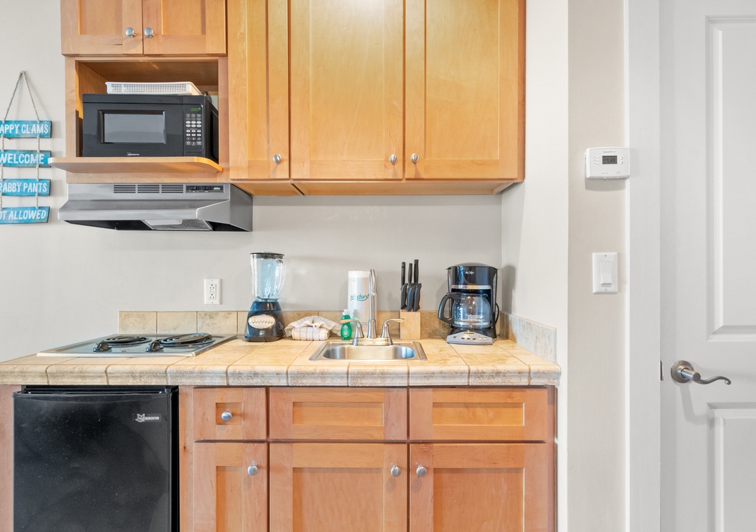 - Kitchenette with two top stove