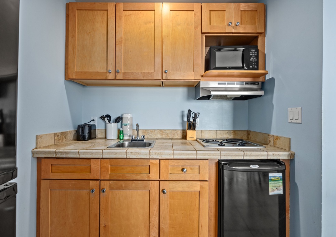 - Kitchenette with two top stove