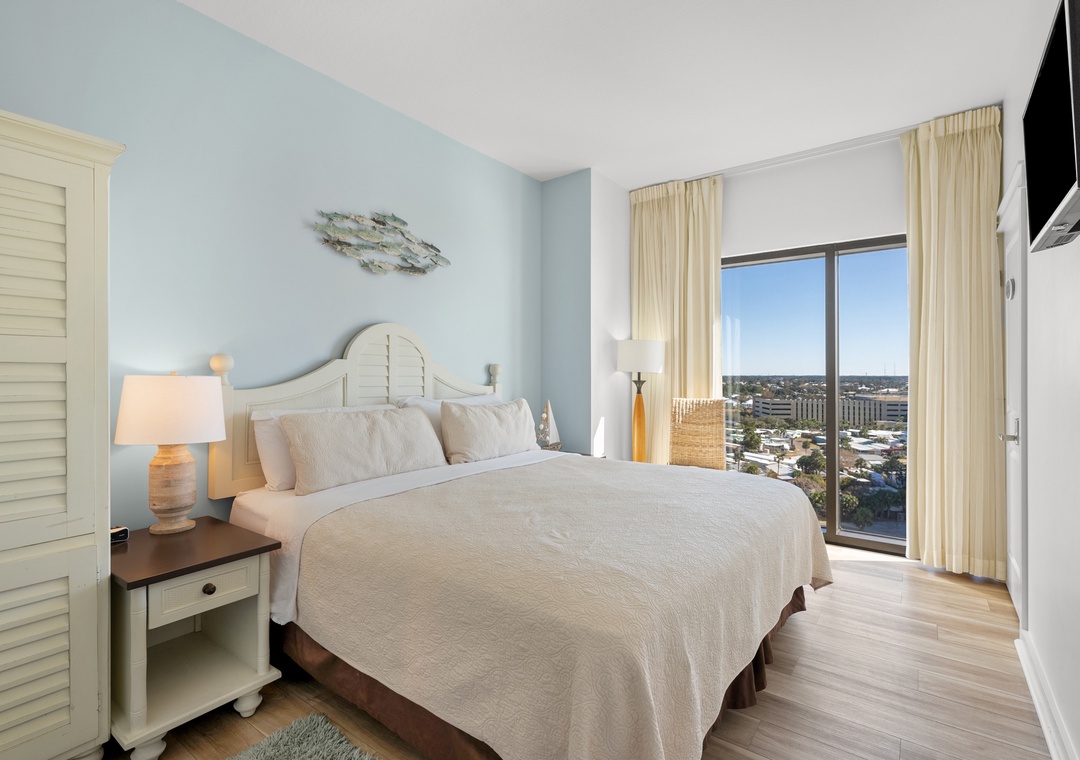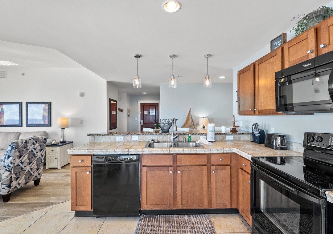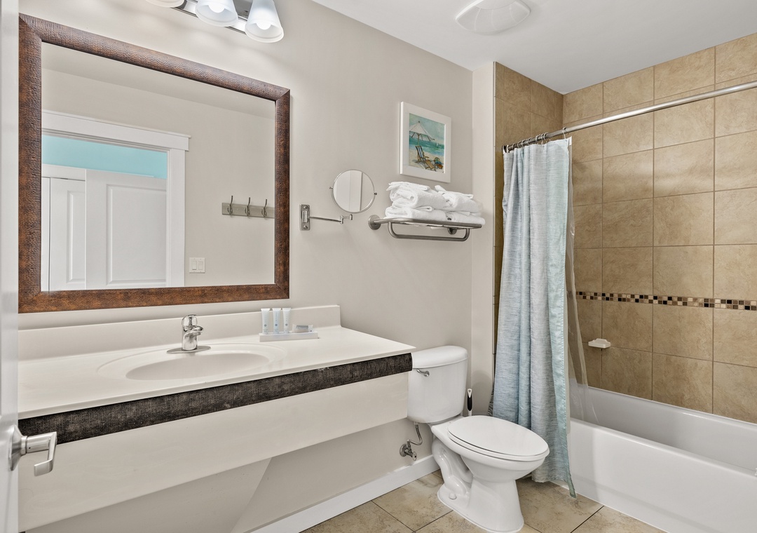 Our spacious two-bedroom condos give families and guests a separate place to visit and relax while little one's nap behind closed doors. The room has one 2-king beds and one queen sleeper pullout sofa. 3-TV’s, 2-full baths, and are fully equipped with household essentials like basic cookware, linens, and a washer and dryer.