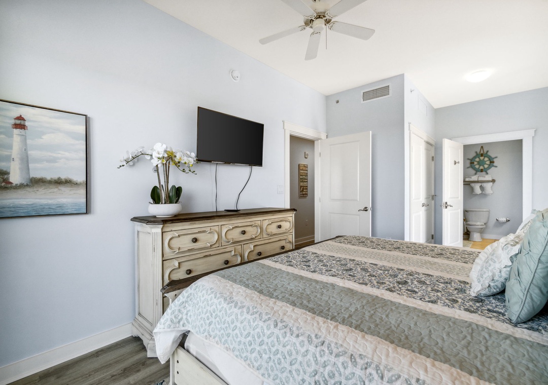 Our one-bedroom condos give families a living space to relax while little ones nap behind a closed door. Each unit will sleep up to 4-guests with a king bed, sofa sleeper, 2-TV’s, and are fully equipped with household essentials like basic cookware, and linens.