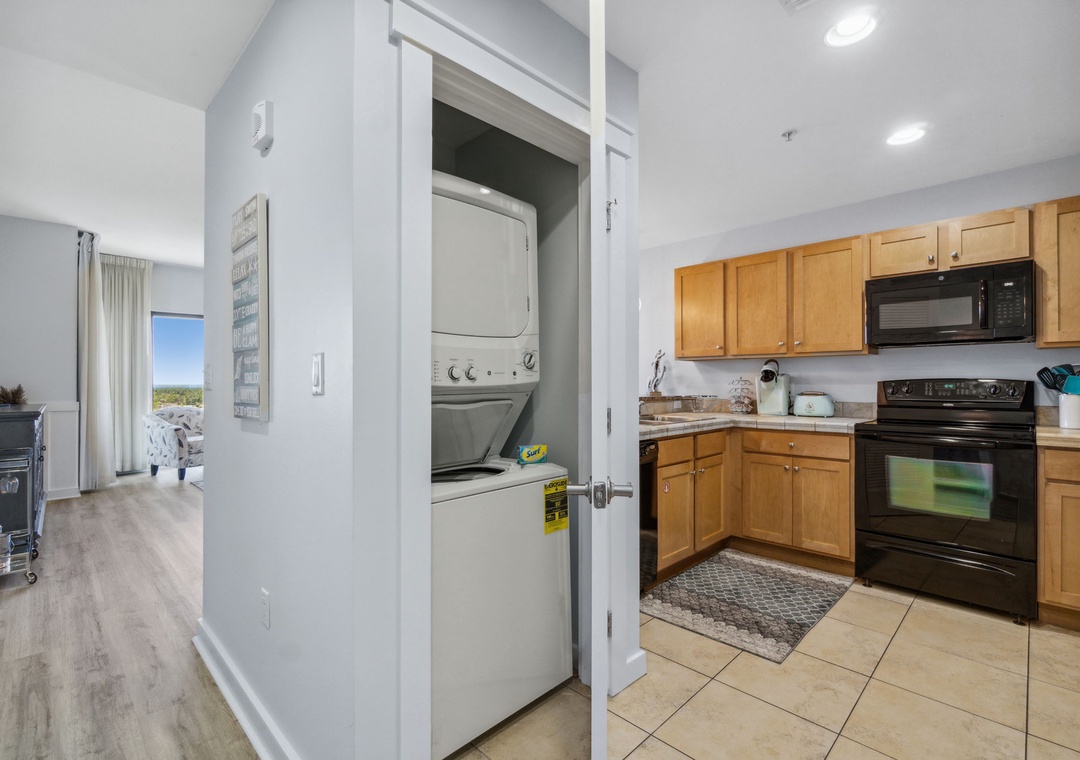 This unit comes equipped with washer and dryer