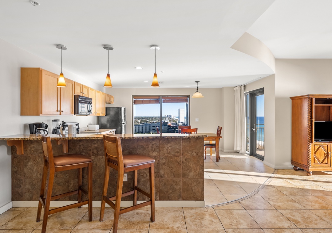 Our three-bedroom condo give families and guests more than enough room to spread out and relax! This three-bedroom unit will sleep up to 10-guests with 3-king beds, 2 pull-out sofa sleepers, 4-TV’s, 3-full baths, and are fully equipped with household essentials like basic cookware, linens, and a washer and dryer.