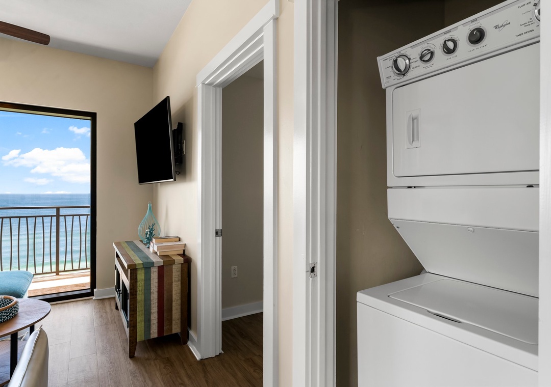 Most units have a washer and dryer, if your unit does not have a washer and dryer, please use coin operated laundry on the first floor as needed.