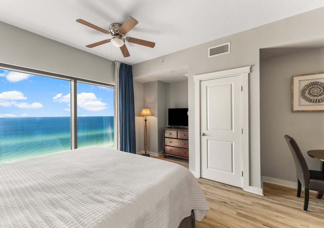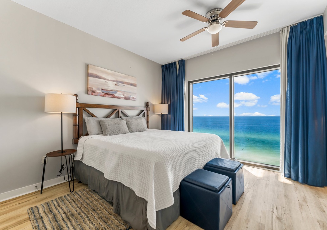 VIEWS VIEWS VIEWS! This beautiful condo has beach views from almost every corner. This corner unit overlooking the pool and out to the beach with miles of views. Just a mile from Pier Park. Fully furnished 2-bed 2-bath unit with high vaulted ceilings that has the lockout capability that provides privacy to families. Second bedroom also its own private kitchenette and dining area. Luxurious living in PCB.