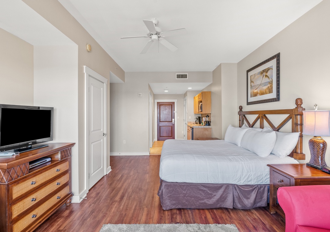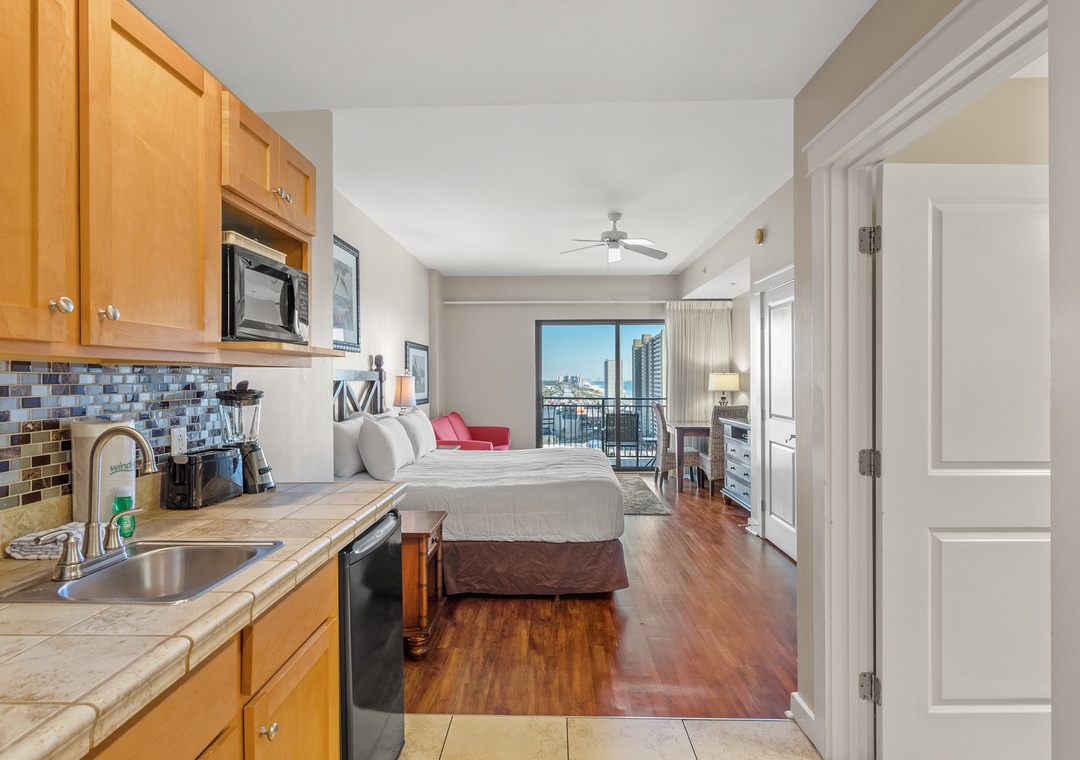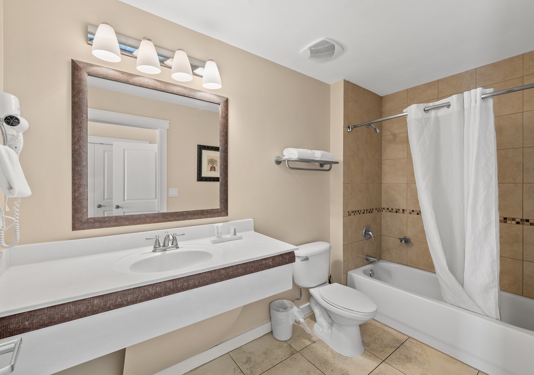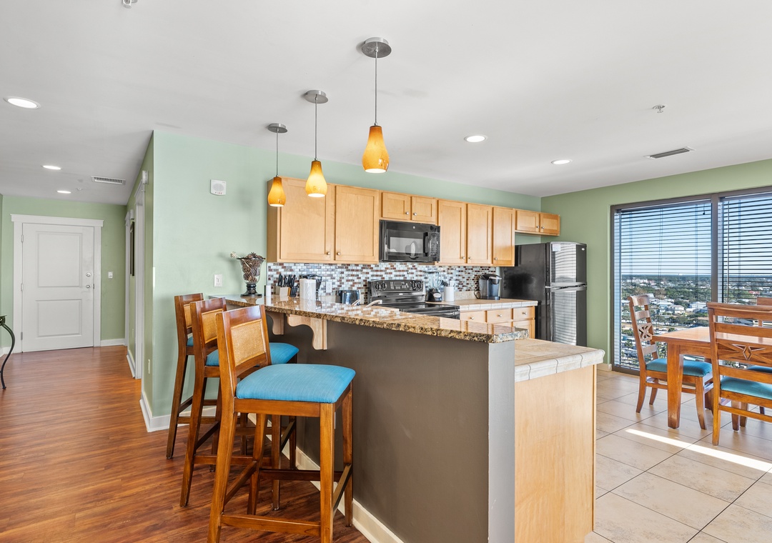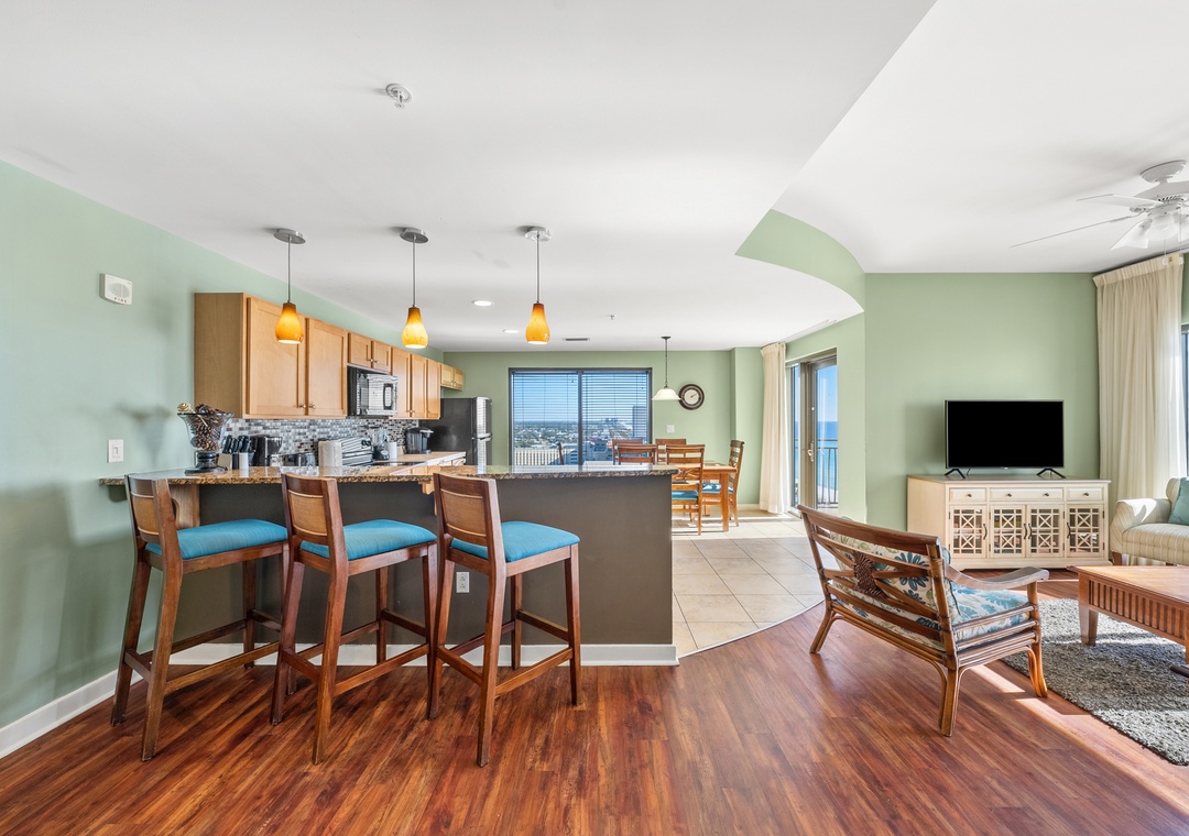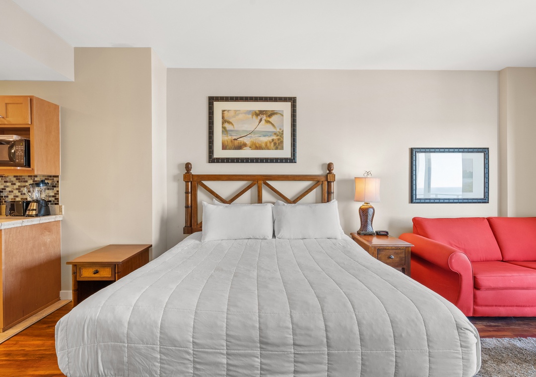 Our three-bedroom condos give families and guests more than enough room to spread out and relax! This unit will sleep up to 10-guests with 3 King bedrooms and 2 Queen pullout sleeper sofas and are fully equipped with household essentials like basic cookware, linens, and a washer and dryer. TVs are available in each bedroom and living room.