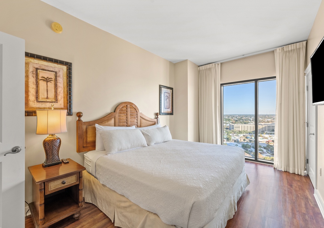 Our spacious two-bedroom condos give families and guests a separate place to visit and relax while little one's nap behind closed doors. The room has one 2-king beds and one queen sleeper pullout sofa. 3-TV’s, 2-full baths, and are fully equipped with household essentials like basic cookware, linens, and a washer and dryer.
