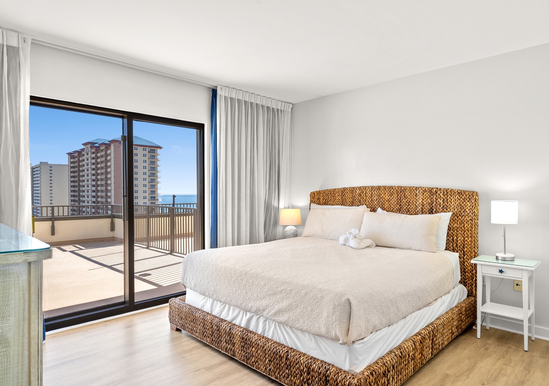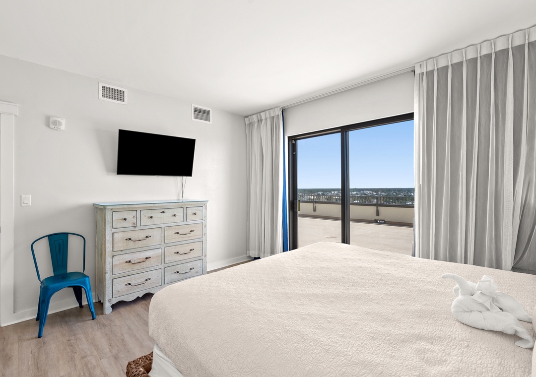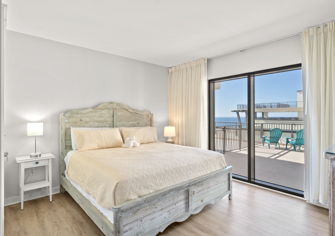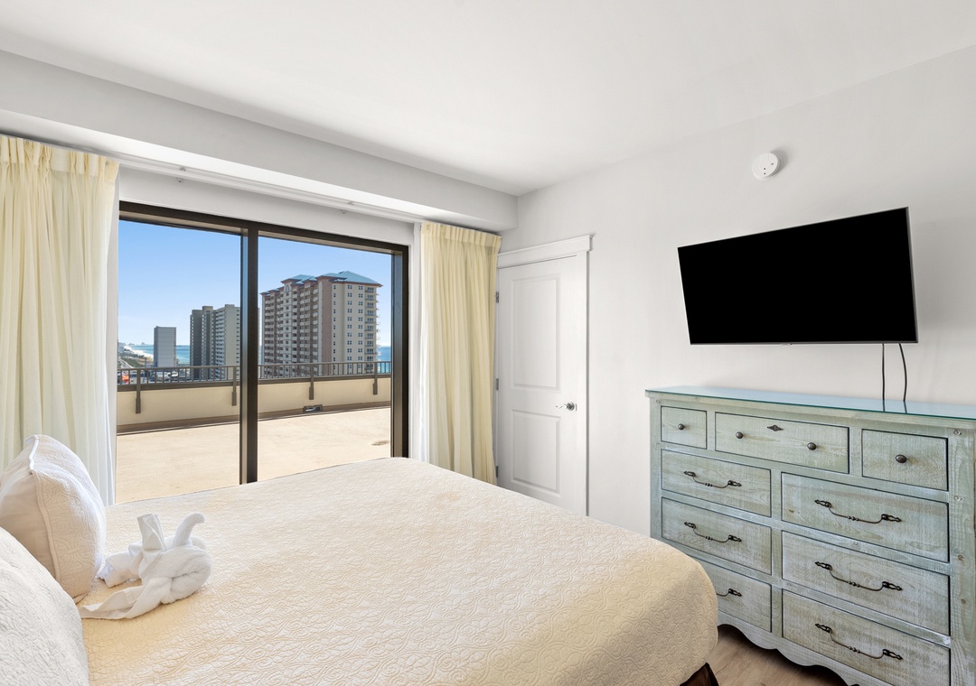 The four bedroom penthouse is a perfect option for families and guests looking for all the comfort and conveniences of home. Each of the four bedrooms features has magnificent views of the Gulf. This beautiful unit will sleep up to 10-guests with 4-king beds, twin bunk beds, 4-TV’s, 2-full baths, and are fully equipped with household essentials like basic cookware, linens, and a washer and dryer. If you’re a person who loves the best of the BEST, this is the place for you!