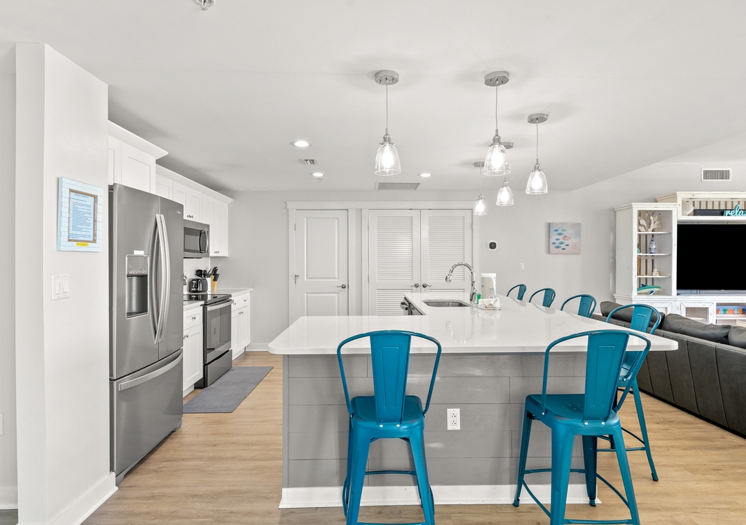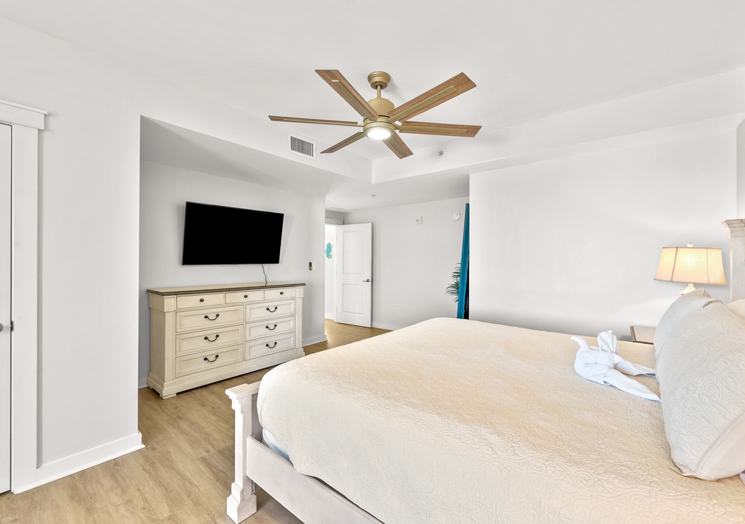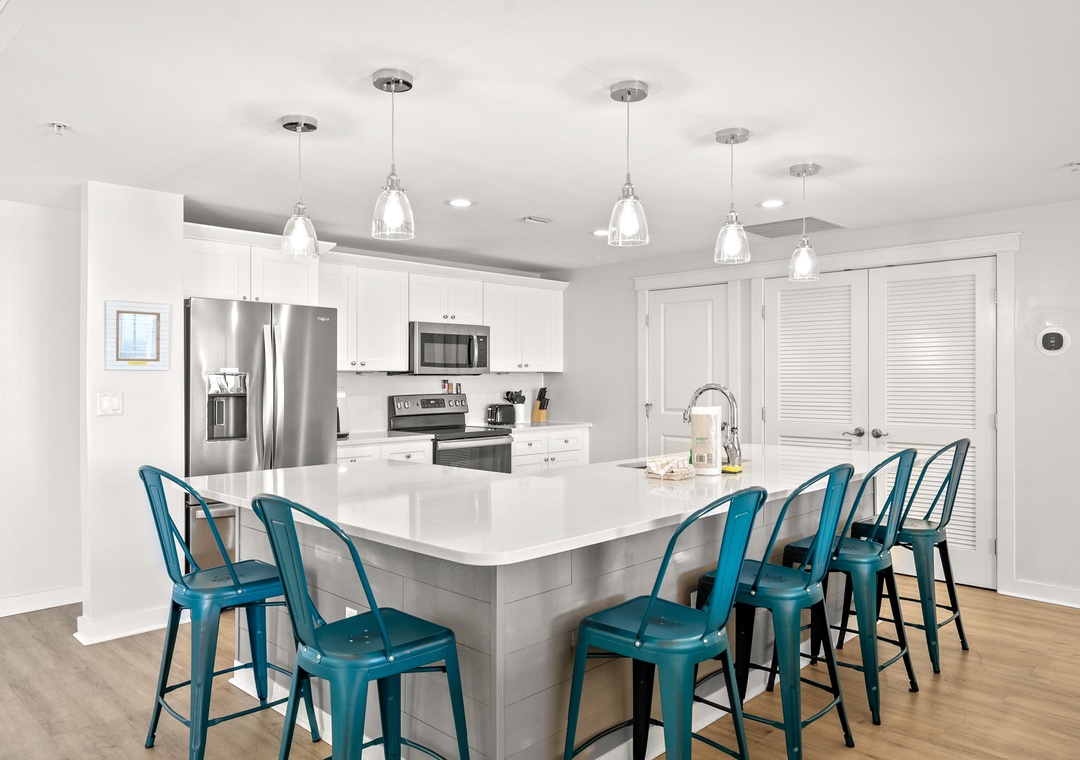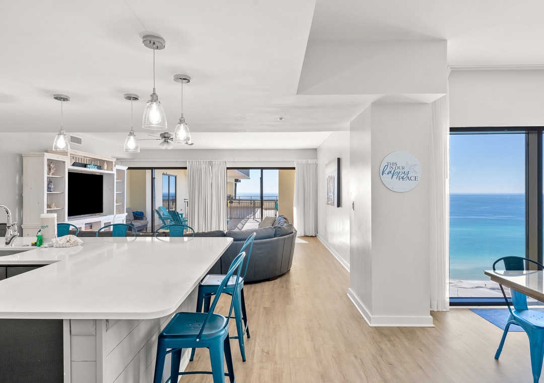 The four bedroom penthouse is a perfect option for families and guests looking for all the comfort and conveniences of home. Each of the four bedrooms features has magnificent views of the Gulf. This beautiful unit will sleep up to 10-guests with 4-king beds, twin bunk beds, 4-TV’s, 2-full baths, and are fully equipped with household essentials like basic cookware, linens, and a washer and dryer. If you’re a person who loves the best of the BEST, this is the place for you!